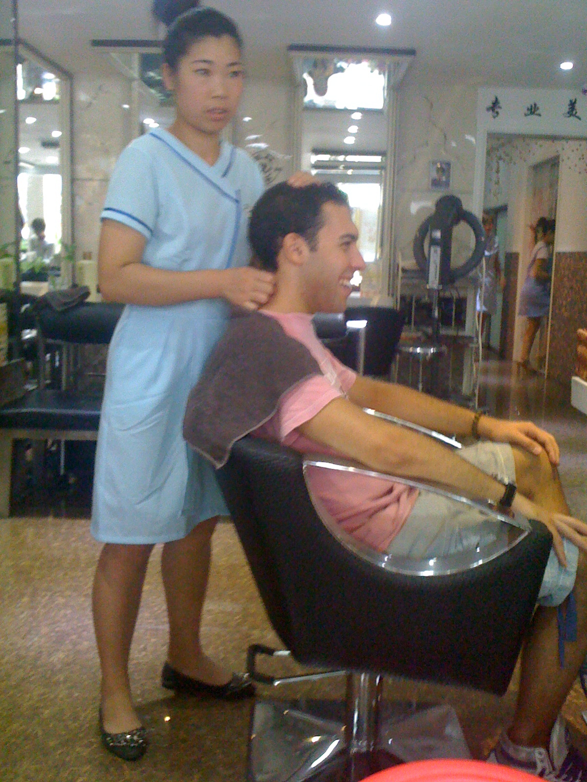 Mi siedo, mi fanno lo shampoo, scelgo la piega che mi piace oggi (al costo di 3 euro quindi in realtà ne potresti scegliere almeno 4 o 5 al giorno pagando come in Italia), l’assistente dell’hair stylist mi mette il computer davanti e parte il film. Sanno che mi piacciono quelli d’azione e quindi oggi è la volta di “Transporter 2” rigorosamente con i sottotitoli cinesi perchè sanno che sto cercando di impararlo. Geniale anche la scelta del film stavolta perchp non solo è d’azione ma c’è anche Alessandro Gassman, quindi il tocco di finezza nella scelta di un film con un attore italiano.