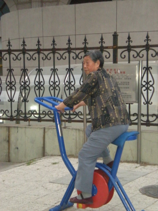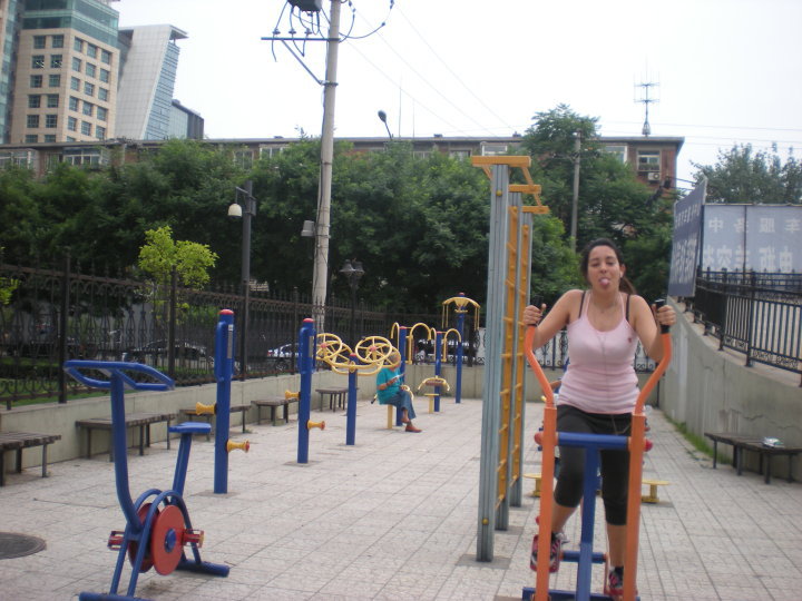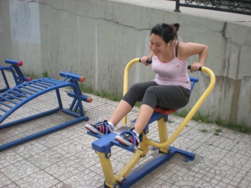La Cina è fantastica. Cioè qui, realmente, il governo pensa al popolo. Hanno una strada rotta? La rifanno subito. Gli anziano non possono permettersi la palestra? Ecco che nei condomini e anche per strada trovi quelle gratuite e usufruibili da tutti. Ed è proprio di questo oggi che vi voglio parlare. Della palestra sotto casa mia. E’ noto come io non sia per niente una persona sportiva. Cioè il massimo dello sport che faccio è guidare la macchina o sfogliare un libro. Però, visto che ho la palestra gratis sotto casa e ho deciso di cambiare vita, perchè non sfruttarla. E così domenica pomeriggio, insieme con Laura, mi sono apprestata a questo momento incredibile che è stato la mia prima volta in palestra in Cina. Gli attrezzi sono di tutti i generi e ci sono anche quelli massaggiatori per fare streching. Ora, partendo dal presupposto che la signora di 65 anni che avevo di fronte aveva più elasticità di gambe di me che ne ho solo 29, vi lascio immaginare come è proseguito il tutto. Si perchè infatti in realtà quello che volevo raccontarvi non è del mio prima giorno in palestra…ma del secondo. Si perchè lunedì mi sono puntata la sveglia alle sette e mezza. Ho pensato: “faccio mezz’ora di allenamenti, torno a casa, mi faccio la doccia e alle 9 esco per andare a lavoro”. Quindi ho indossato la mia tuta nuova (sì, ogni occasione è buona per fare shopping!), le mie scarpe da ginnastica, ho preso l’ipod, una tovaglia per asciugare il sudore e sono scesa. Ero incredibilmente professionale. Sembrava che fossi nata per andare in palestra!Davanti a me, che mi allenavo sullo step, i giardinieri del condominio e qalche signora che passeggiva il cane. Ho pensato: “Beh ora faccio vedere a questi cinesi che non sono gli unici sportivi della zona”. Così con passo sostenuto ho continuato il mio allenamento cercando di mascherare il mio volto distrutto (dopo 3 minuti di step…) con un bel sorriso. Sono scesa dallo step e sono passata al vogatore, poi all’attrezzo per i fianchi (non me ne volete ma non conosco i nomi delle macchine per il fitness…), glutei, polpacci, e finalmente sono arrivata al mio punto debole (non che negli altri sia forte ma questo è l’anello mancante di una catena già malandata) gli addominali. Prima di cominciare ho dato un’occhiata ai miei spettatori. Sì c’erano tutti compresa la signora di 70 anni che il giorno prima faceva tutta la figa sulla cyclette , che mi stava guardando invidiosa.