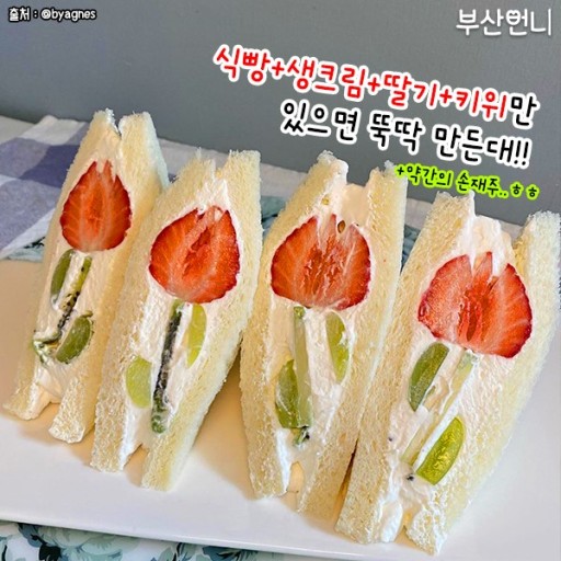 In Corea la versione più nota di questo spuntino è quella con le fragole. Lo “Strawberry Sandwich” è un panino stagionale che, ogni anno, a metà dicembre, viene lanciato in edizione limitata dalla catena di supermercati E-Mart 24, quando le fragole sono più dolci, e viene prodotto fino a marzo. A differenza del solito sandwich triangolare, quello in edizione limitata di E-Mart 24 è rettangolare. Inoltre, come ogni cosa coreana che si rispetti, esiste anche una versione K “dolce” di questo spuntino, ovvero il rifacimento del sando con la frutta disposta in modo da creare un fiore.