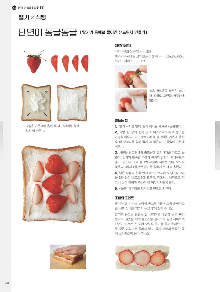 La passione per questo prodotto giapponese comunque non finisce qui, esiste infatti un vademecum del sandwich con la frutta, in vendita in Corea, a circa 11 euro. Il libro è stato scritto dalla ricercatrice giapponese Nagata Yui (autrice anche di “Uova e pane sono deliziosi”, che spiega anche come bollire le uova) e tradotto da Hwang Guk-young. Tra le informazioni comprese nel libro (홈메이드 과일 샌드위치) anche le versioni occidentali del panino con la frutta (io onestamente non ricordo il panino con prosciutto crudo e melone come qualcosa che mangiamo giornalmente in Italia), come spalmare la panna e a quanti centimetri di distanza dal bordo bisogna tagliare il panino. E no, non sto scherzando…