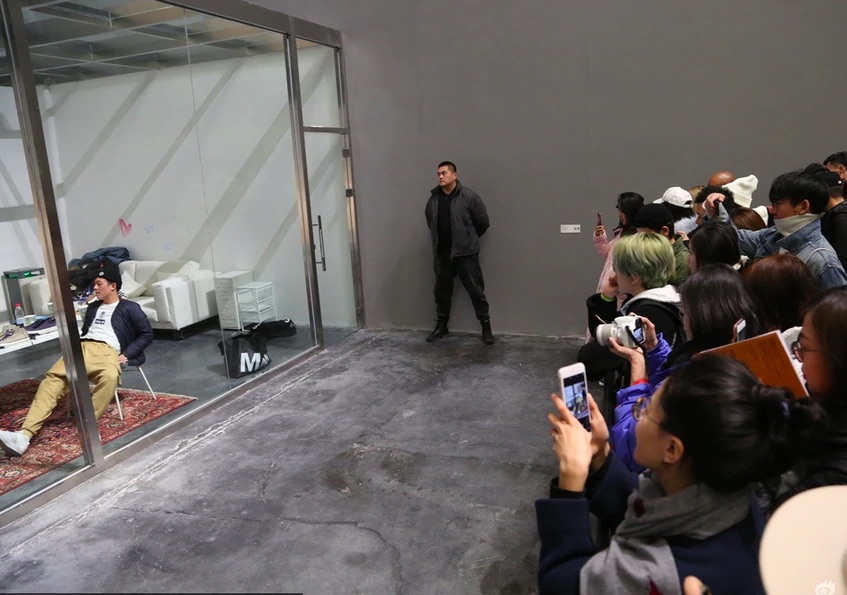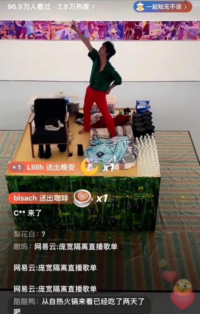 A Pechino il cantante e artista Pang Kuan (庞宽), si è messo in quarantena su un palco grande quanto ad una scatola, all’interno della galleria Star Gallery 星空间 (Xīng kōngjiān) e trasmette in streaming i suoi 14 giorni di isolamento 24 ore su 24.