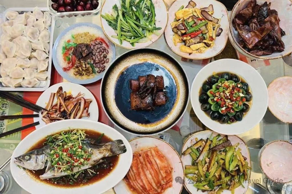 I piatti arrivano in numeri fortunati e quasi sempre c’è il pesce, per augurare Nián Nián Yǒu Yú 年年有余, abbondanza anno dopo anno. Al nord, i ravioli non si discutono.
